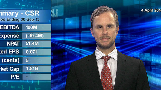 05 Nov 2014 - CSR Limited (ASX:CSR) improves its interim profit 48 per cent on the back of higher earnings across all its businesses.