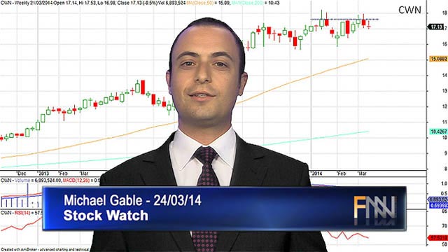 24 Mar 2014 - Investment adviser Michael Gable takes a technical look at NCM, MQG, RIO, CWN, DJS.