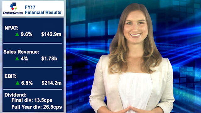15 Nov 2017 - Paint manufacturing company Dulux Group (ASX:DLX) reports net profit after tax (NPAT) growth of 9.6 per cent to $142.9 million for the 2017 financial year to Septembe…