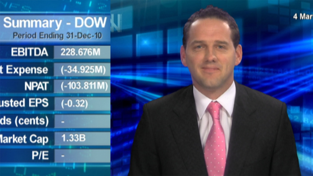 28 Feb 2011 - Downer EDI Ltd (ASX:DOW) posts a first half net loss, and launches a $279 million capital raising to inject funds into its troubled Waratah train project in NSW.