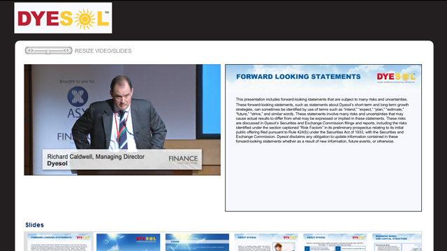 31 Oct 2014 - Dyesol (ASX:DYE), MD, Richard Caldwell introduces its solar power dye technology, its cost benefits and applications.