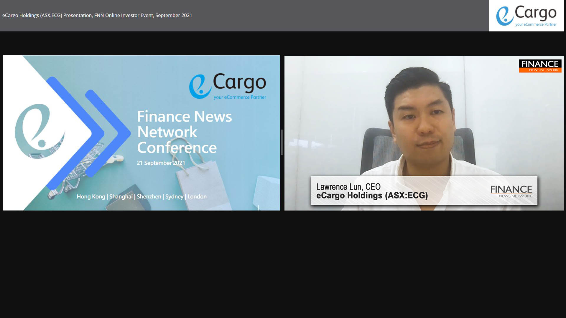 24 Sep 2021 - eCargo Holdings Limited (ASX:ECG) CEO Lawrence Lun presents on the company's solutions for brands and retailers to accelerate online sales and launch into new markets…