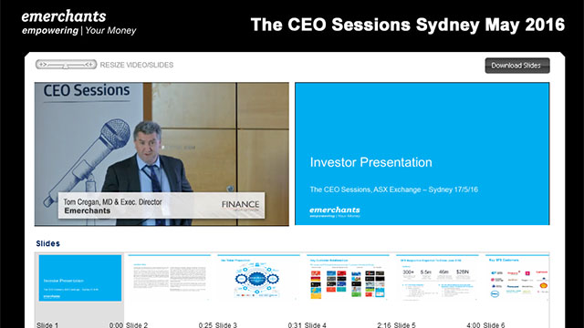 23 May 2016 - Emerchants Limited (ASX:EML) Managing Director Tom Cregan discusses its payment solutions technology, acquisition of Store Financial Services.