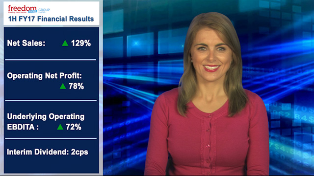 01 Mar 2017 - Freedom Foods Group Limited (ASX:FNP) announces its net sales grew 129% in the six months to 31 December 2016.