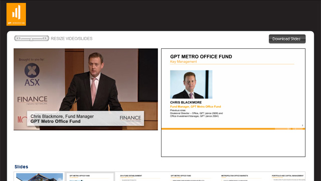 25 Jun 2015 - GPT Metro Office Fund (ASX:GMF) Fund Manager Chris Blackmore explains how the fund plans to capitalise from growth in the property sector.