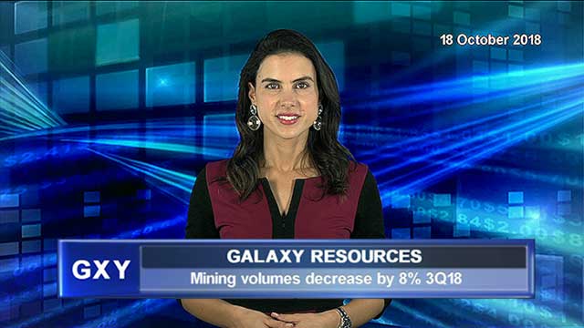 18 Oct 2018 - Galaxy Resources (ASX:GXY) has provided a market update with total mining volumes at its Mt Cattlin mine down by 8 per cent for the September quarter.