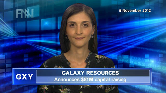 05 Nov 2012 - Australian-based global lithium company Galaxy Resources Limited (ASX:GXY) is set to raise $81 million via a share placement to two cornerstone investors.