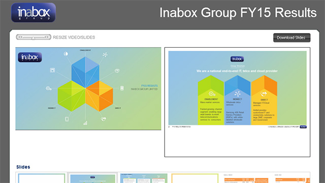 06 May 2015 - Inabox Group Limited (ASX:IAB) Managing Director and CEO Damian Kay details the company’s guidance, new sales initiatives, director and consolidation in the telco sec…