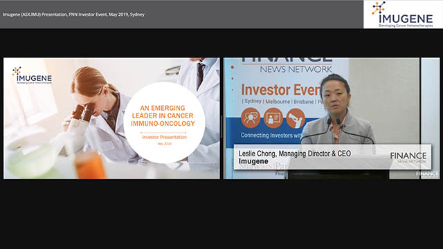 Company Presentations / by - 6 years ago Imugene (ASX:IMU) Presentation, FNN Investor Event, May 2019, Sydney 27 May 2019 - Imugene Limited (ASX:IMU) Managing Director & CEO, Leslie Chong presents on trial progress with the company's HER-B Vaxx cancer vaccines, the advantages of B-cell vac…