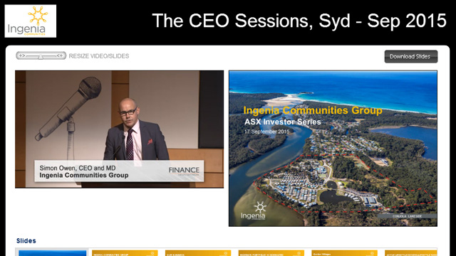 Ingenia Communities (Ingenia) is a leading Australian property group that owns, operates and develops a growing portfolio of lifestyle communities across key urban and coastal markets.