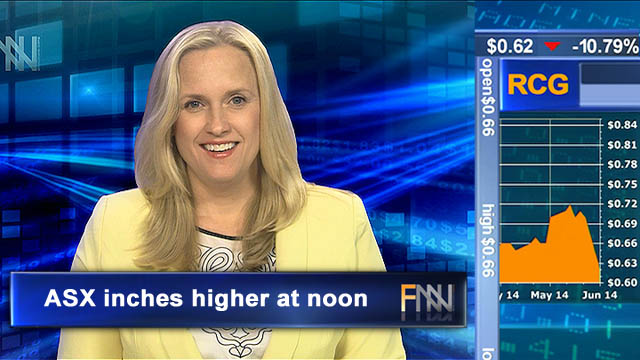02 Jun 2014 - ASX inches higher at noon despite a 4 per cent dip in iron ore prices over the weekend. Retailer RCG Group (ASX:RCG) downgrades profit on warm weather woes.