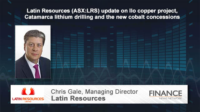 Latin Resources Limited is an Australian-based mineral exploration company focused on creating shareholder wealth through the identification and definition of mineral resources in Latin America. The Company has secured over 101,450 hectares of exploration concessions in the lithium pegmatite districts of Catamarca and San Luis Provinces, Argentina. The company also has a portfolio of projects in Peru and is actively progressing its Iron Oxide-Copper-Gold and Copper Porphyry projects in the Ilo region with its joint venture partner First Quantum Minerals Ltd.