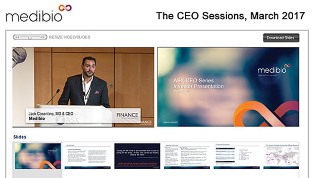 11 Oct 2016 - Medibio Ltd (ASX:MEB) signs up to mental health campaign, which it hopes will build awareness for its yet-to-be launched workplace diagnostic stress product.