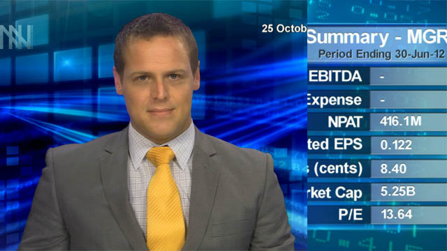 27 Jul 2012 - Aus shares 0.8% stronger. Mirvac Group (ASX:MGR) obtaines planning approval for its residential apartment development at Harold Park in Sydney.
