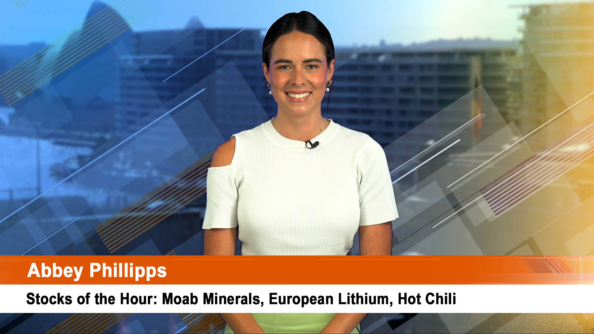 Company News / by Abbey Phillipps - 2 years ago Stocks of the Hour: Moab Minerals, European Lithium, Hot Chili 13 Jan 2023 - A snapshot of the stocks on the move featuring Moab Minerals (ASX:MOM), European Lithium (ASX:EUR) and Hot Chili (ASX:HCH).