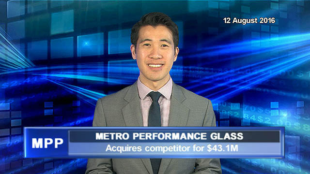12 Aug 2016 - Metro Performance Glass Ltd (ASX:MPP) enters conditional agreement to acquire all the shares in Australia’s third largest glass processor in Victoria and NSW.
