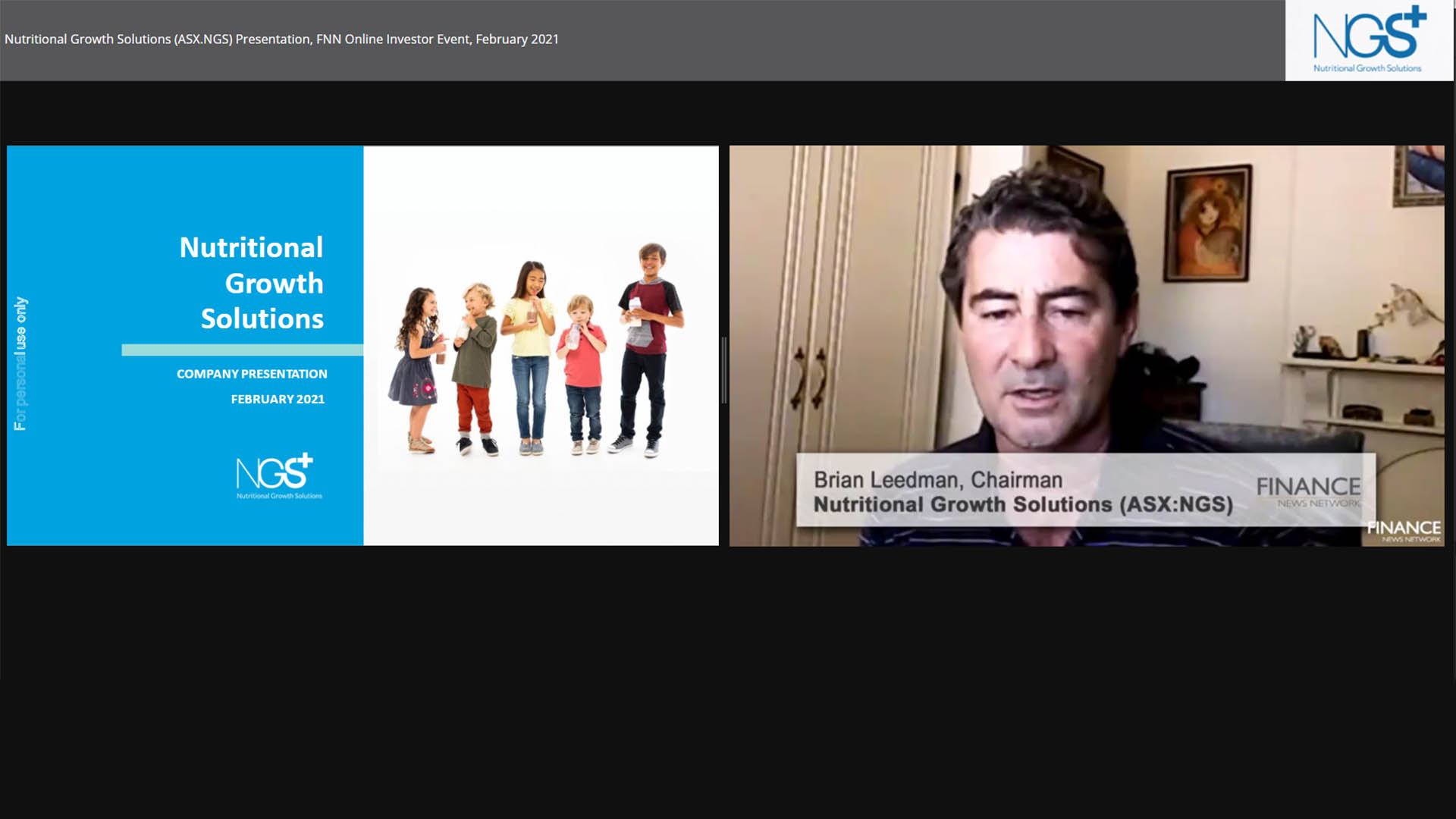 25 Feb 2021 - Nutritional Growth Solutions (ASX:NGS) Chairman Brian Leedman provides an update on its products and expansion to China.