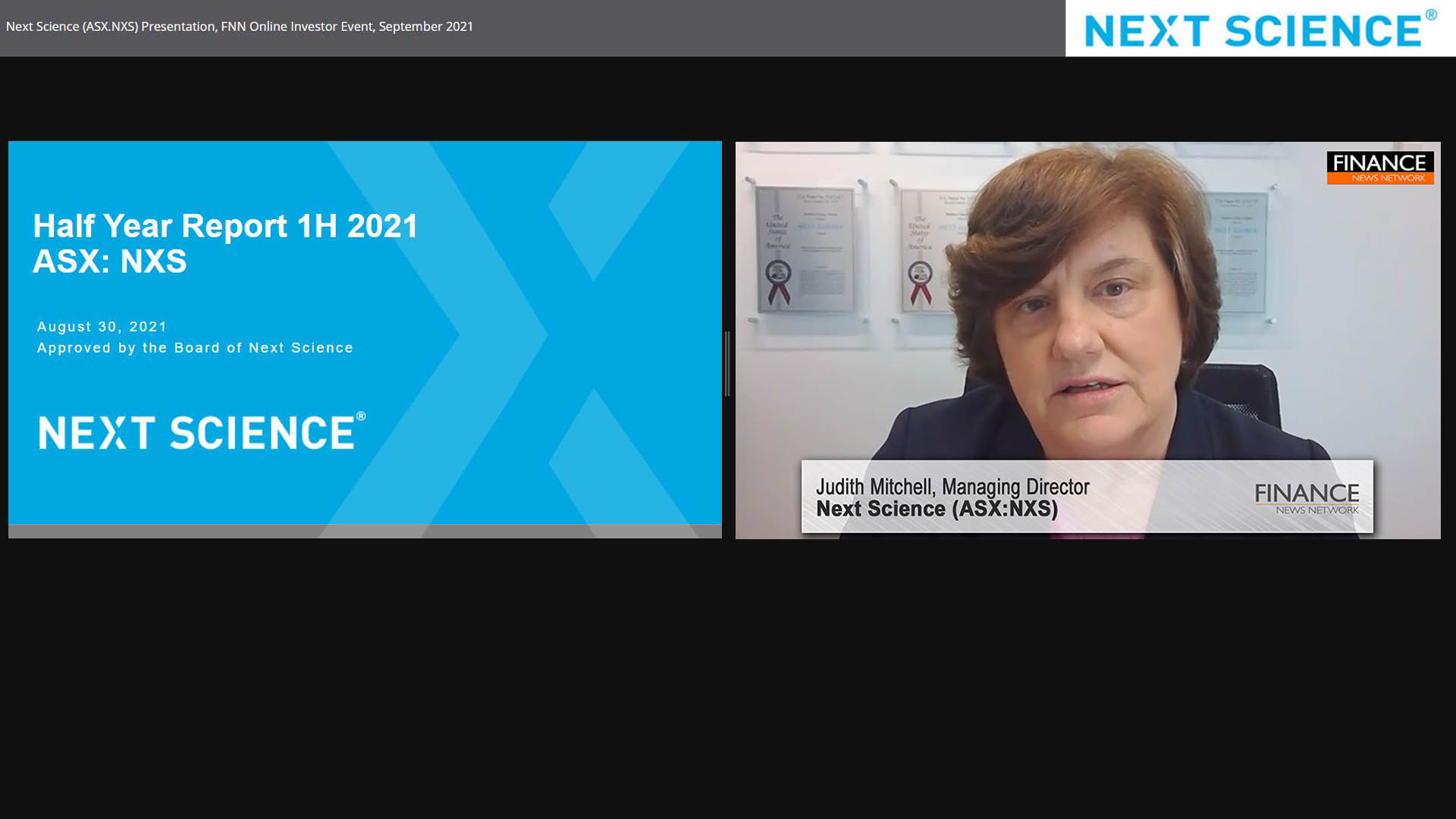 01 Sep 2021 - Next Science (ASX:NXS) Managing Director Judith Mitchell presents on traction growth of the company's products, delivery on key milestones, financials and second hal…