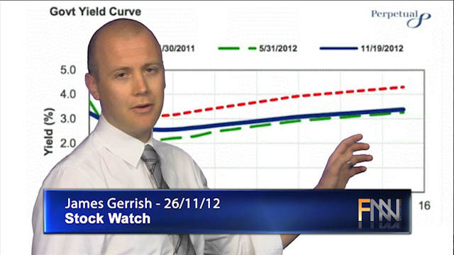 26 Nov 2012 - Investment advisor James Gerrish takes a technical look at S&P 500, S&P/ASX 200, Government Yield Curve, Household deposits v Equity Investments, NAB, ALQ, DWS, OKN.