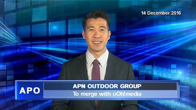 14 Dec 2016 - APN Outdoor Group (ASX:APO) and oOh!media Ltd (ASX:OML) agree to merge to form a leading, diversified media group with a market capitalisation of $1.6 billion.