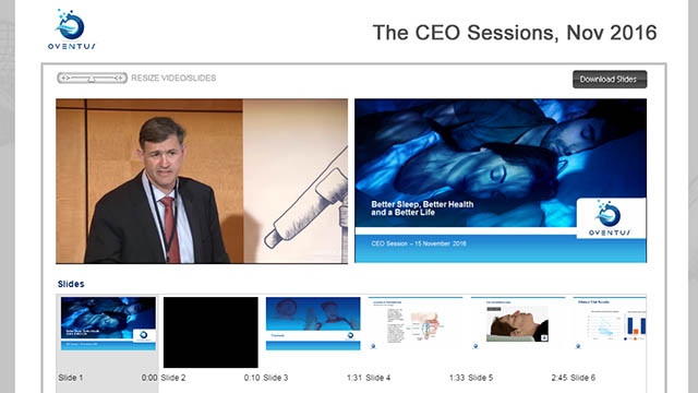 Oventus is an Australian medical device company and is listed on the Australian Securities Exchange (ASX: OVN). We offer a new treatment modality for obstructive sleep apnoea (OSA) via our Airway Technology. We are committed to providing the highest quality corporate governance and the generation of sustainable, long-term returns for our shareholders. Our mission is to be a global leader in the treatment of snoring and OSA. What makes us unique is our patented airway design, allowing for breathing through our O2VentTM oral devices to bypass obstructions of the nose, soft palate and tongue that can contribute to snoring and OSA. The O2VentTM is bridging the gap between Oral Appliance and CPAP therapy to enhance treatment outcomes, including for CPAP intolerant sleep apnoea sufferers.