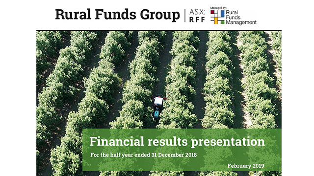 25 Feb 2019 - Rural Funds Group Limited (ASX:RFF) Managing Director David Bryant presents the company's half year FY19 results.