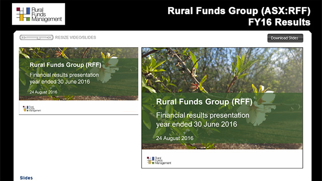 28 Aug 2017 - Rural Funds Group Limited (ASX:RFF) Managing Director David Bryant presents the company's FY17 full year results.
