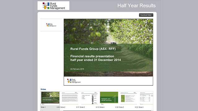 17 Apr 2015 - Andrea Lemmon, Executive Manager - Funds Management of Rural Funds Management, responsible entity of Rural Funds Group (ASX:RFF) provides an update to investors follo…