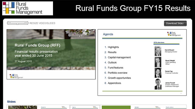10 Sep 2014 - Rural Funds Group (ASX:RFF) Managing Director David Bryant discusses the diversified agricultural REIT’s FY14 financial results.