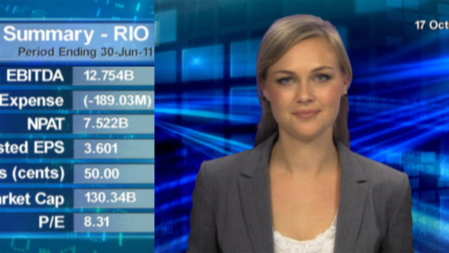 13 Oct 2011 - Rio pushes market higher. Rio Tinto Ltd (ASX:RIO), (NYSE:RIO) reports record sales of iron ore and hard coking coal production in the September quarter.