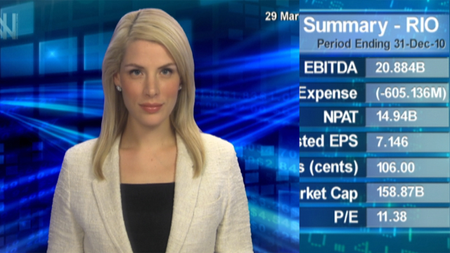 18 Mar 2011 - Strong end to the week. Rio Tinto Ltd (ASX:RIO) receives acceptance for more than 33 per cent of shares in its $US3.9 billion takeover target Riversdale Mining Ltd (A…