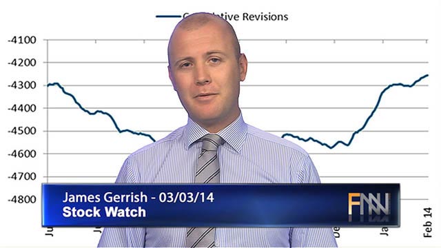 03 Mar 2014 - Investment advisor James Gerrish takes a technical look at S&P 500, S&P/ASX 200, Total Share Holder Return Expectations, Cumulative Earnings Revisions, FLT, VOC, TCL,…