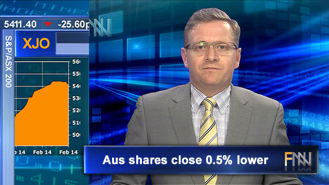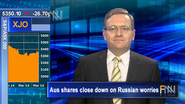 27 Mar 2014 - Australian shares closed 0.5 per cent down after continuing fears of escalating Russian aggression sent the market sharply lower in early trade.