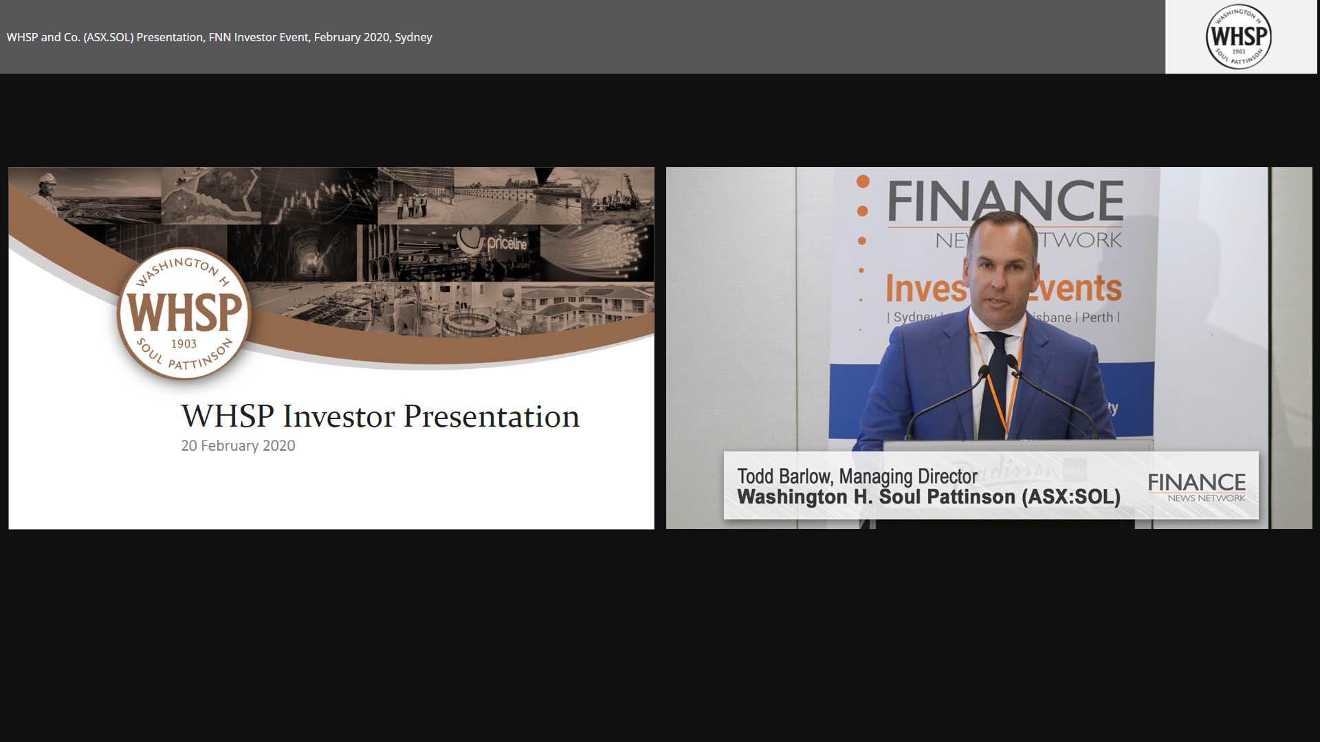 28 Feb 2020 - Washington H. Soul Pattinson and Company Limited (ASX:SOL) Managing Director, Todd Barlow presents on its history of outperforming the market, paying dividends and at…