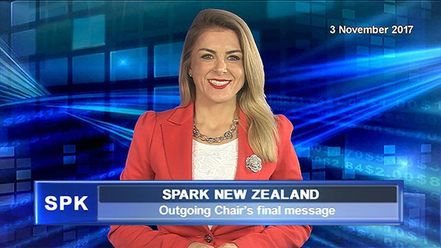 03 Nov 2017 - NZ telecommunications giant, Spark New Zealand (ASX:SPK) says while its outgoing Chair passes over the baton to Justine Smyth the company is positioning itself for t…