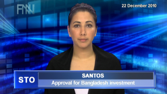 22 Dec 2010 - Santos Ltd (ASX:STO) $200 million investment plan to drill three wells in the Bay of Bengal has received approval from the government of Bangladesh.