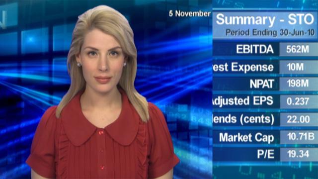 03 Aug 2010 - Aus shares are higher at midday. Santos Ltd (ASX:STO) announces its executive vice president and chief financial officer Peter Wasow will retire.