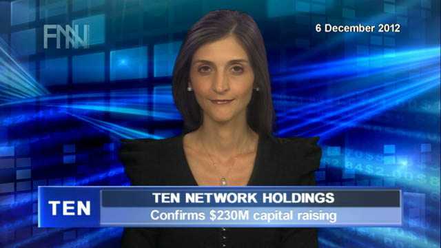 06 Dec 2012 - Ten Network Holdings Limited (ASX:TEN)confirms $230 million capital raising in an effort to boost its revenue and reduce debt.