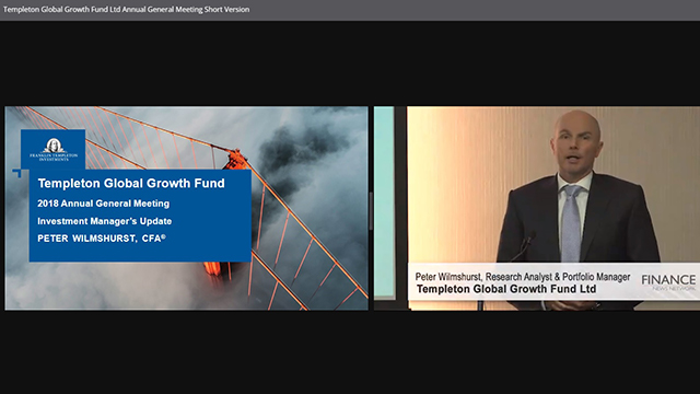 24 Oct 2018 - Templeton Global Growth Fund Limited (ASX:TGG) Portfolio Manager, Peter Wilmshurst presents at the company's Annual General Meeting, 17 October 2018, Melbourne.