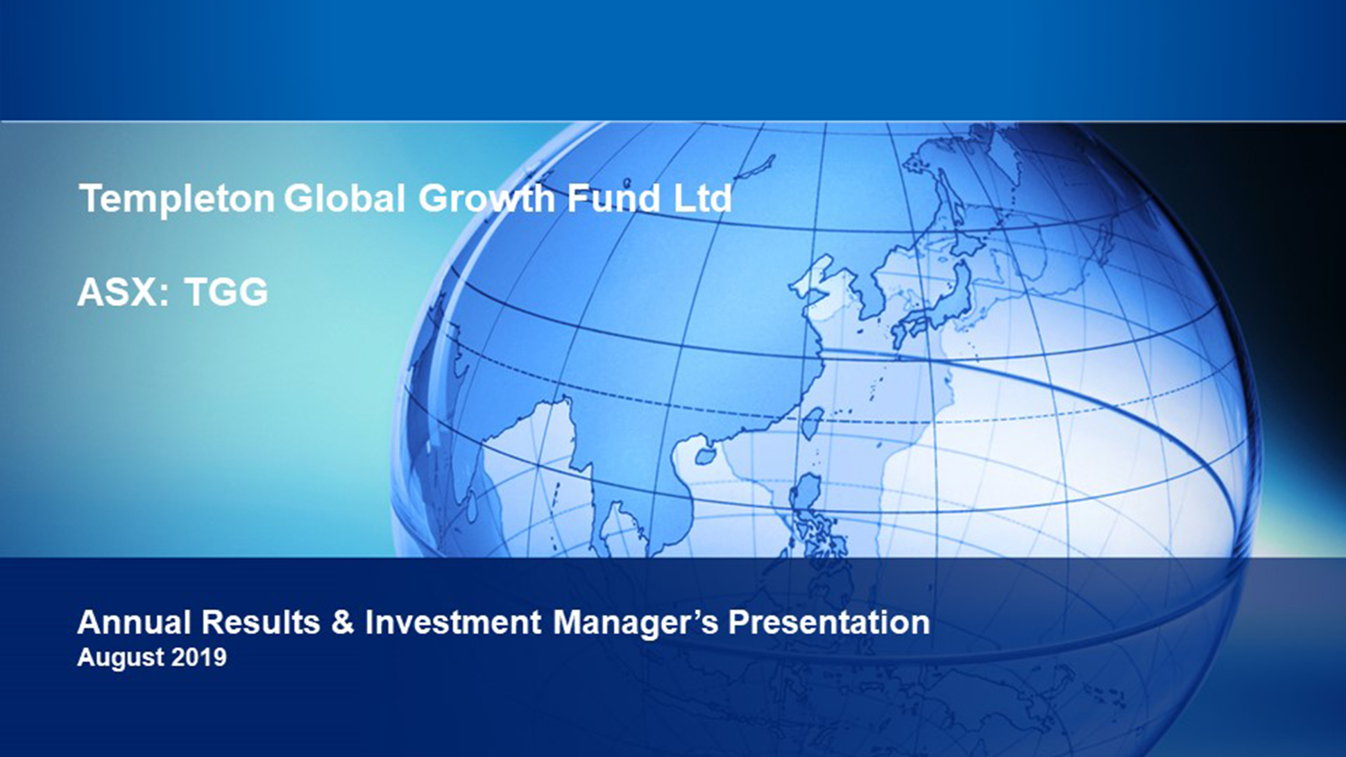 30 Aug 2019 - Templeton Global Growth Fund Limited (ASX:TGG) Chairman, Chris Freeman presents the company's FY19 results and Portfolio Manager, Peter Wilmshurst, provides a portfol…