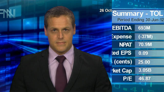 27 Aug 2012 - Aus shares retreat from highs. Toll Holdings Limited (ASX:TOL) full year net profit falls 77 percent to $65 million.