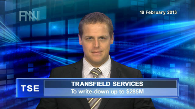 19 Feb 2013 - Transfield Services Limited (ASX:TSE) announces a write down of up to $285 million ahead of releasing its first half results next week.