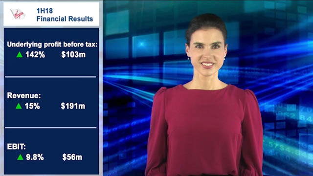 28 Feb 2018 - Virgin Australia (ASX:VAH) has reported its group underlying profit before tax rose about 142 per cent to $103 million for the half year to December 2017.