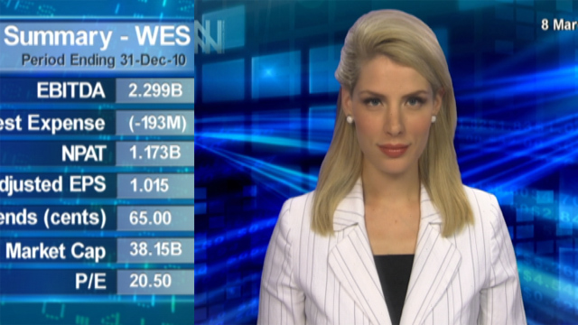 17 Feb 2011 - Stocks finish higher. Wesfarmers Ltd (ASX:WES) booked a net profit of $1.173 billion after tax for the six months to the end of December.