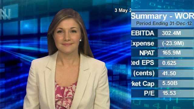 17 May 2013 - ASX up, AUD drops, gold falls. WorleyParsons Limited (ASX:WOR) and Wesfarmers Limited (ASX:WES) retreat after issuing profit warnings.