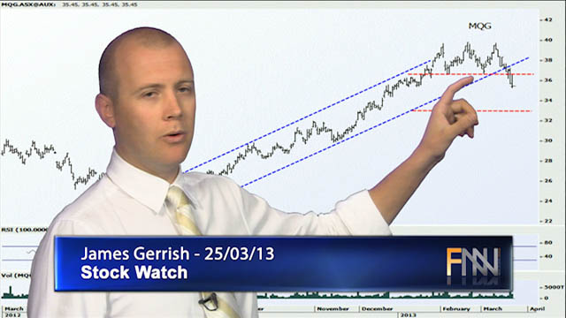 25 Mar 2013 - Investment advisor James Gerrish takes a technical look at S&P/ASX 200, ANZ, WBC, WOW, NCM, MQG, MYBG.