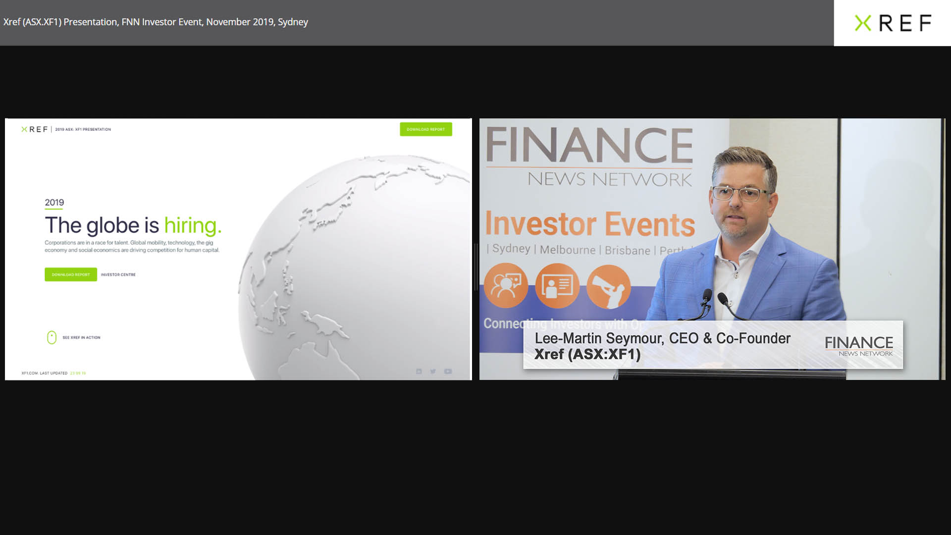 04 Dec 2019 - Xref Limited (ASX:XF1) CEO & Co-Founder, Lee-Martin Seymour, talks about the company's candidate reference checking solution for HR departments, partner integration a…