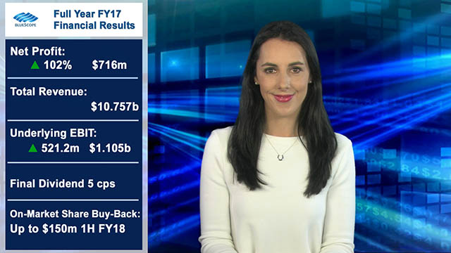 21 Aug 2017 - BlueScope Steel (ASX:BSL) reports net profit is up 102 per cent to $716 million, for the full year to 30 June 2017.