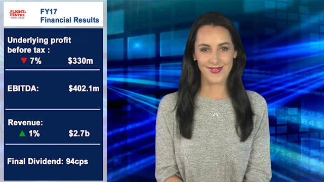 24 Aug 2017 - Flight Centre Travel Group Limited (ASX:FLT) announces its underlying profit before tax has dropped by 7 per cent for FY17 to $330M.