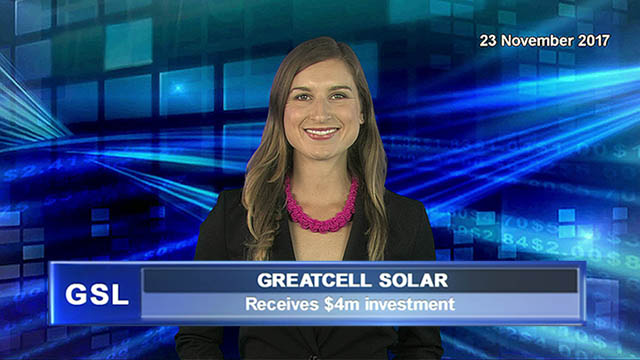 23 Nov 2017 - Solar company Greatcell Solar (ASX:GSL) announces it has executed a subscription agreement for a $4 million investment from an Australian food, water and energy fund.